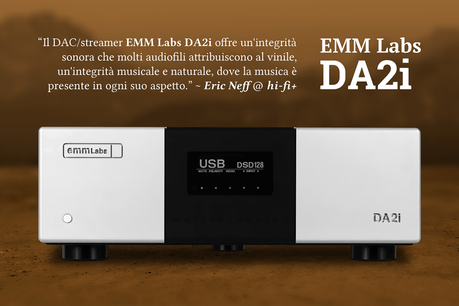 Il DAC/streamer EMM Labs DA2i offre un'integrità del suono che molti audiofili attribuiscono al vinile, un'integrità musicale e naturale, dove la musica è presente in ogni suo aspetto. Non ho mai provato prima d'ora un livello di soddisfazione sonora simile, anche con DAC di fascia di prezzo superiore. DA2i ha la mia più alta raccomandazione!"