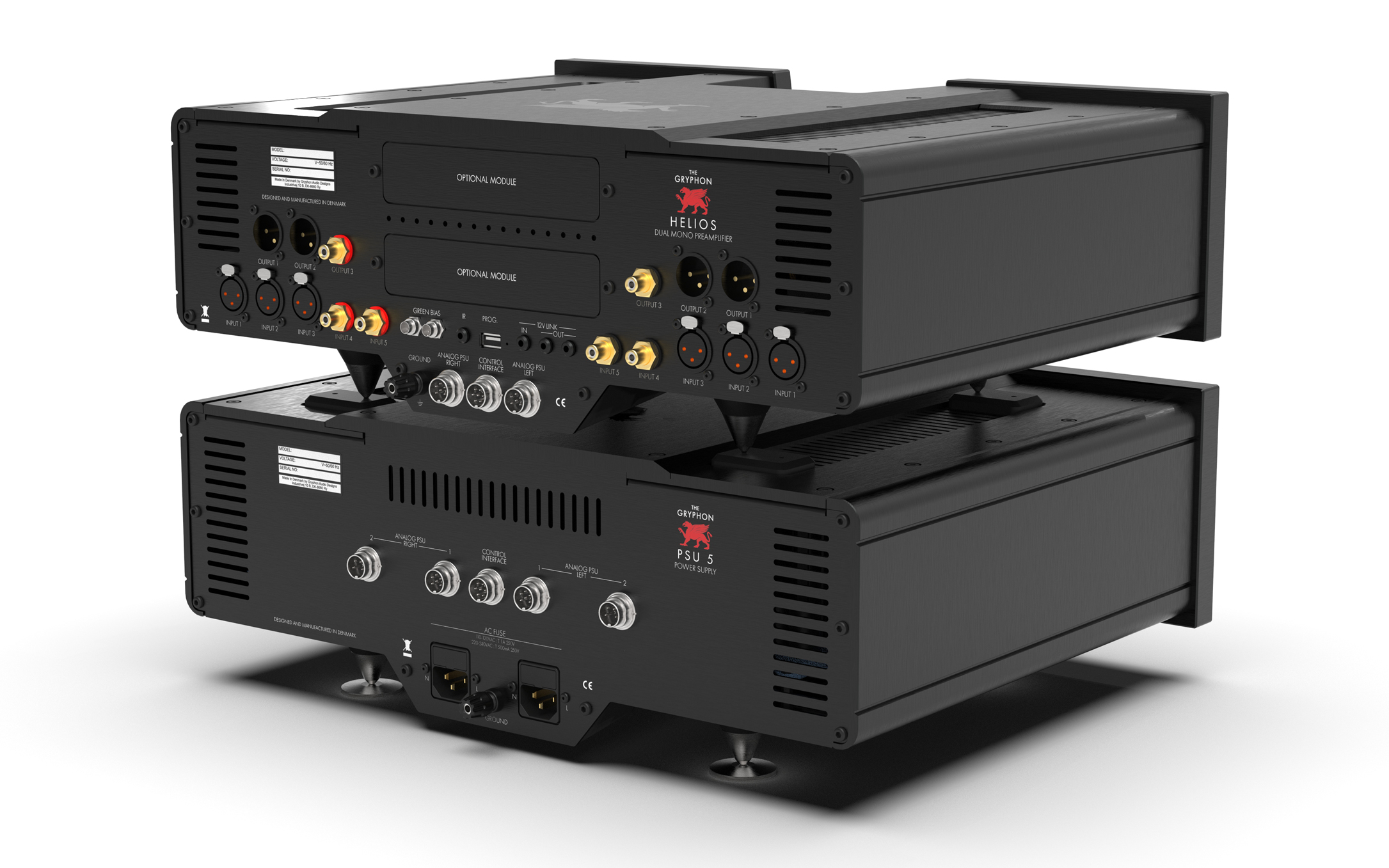 Helios è un preamplificatore in classe A con ingressi e uscite sia bilanciati sia single-ended, con moduli opzionali per ingresso fono e ingresso digitale, ed è dotato di alimentazione separata PSU 5 che adopera nuovi trasformatori toroidali custom.